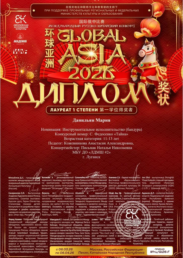 Поздравляем победителей Международного русско-китайского конкурса "GLOBAL ASIA 2026" (г. Москва, Пекин) !